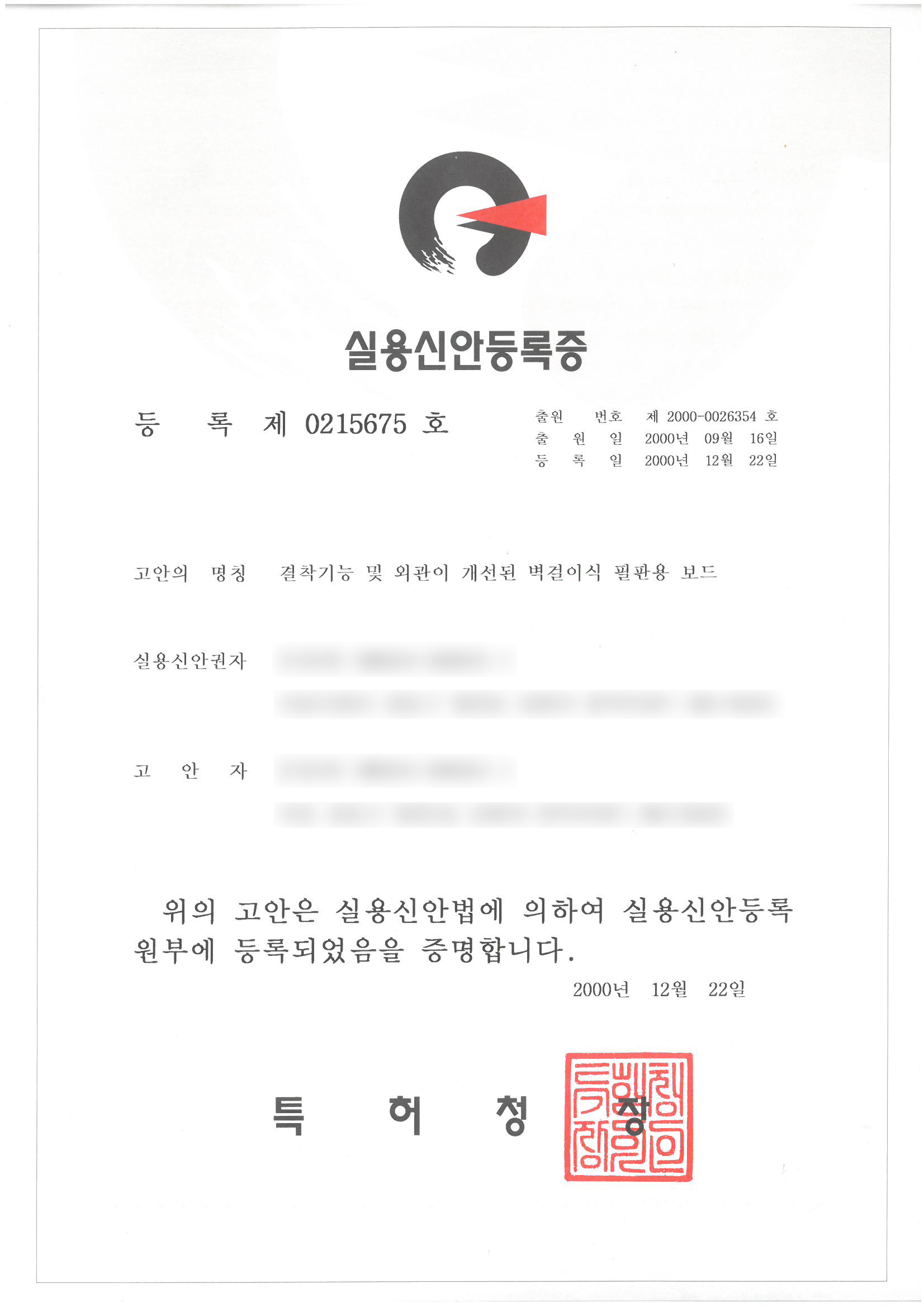 °í¾ÈÀÇ ¸íĪ [°áÂø±â´É ¹× ¿Ü°üÀÌ °³¼±µÈ º®°ÉÀÌ½Ä Ä¥ÆÇ¿ë º¸µå] - 07.12»ý»ê¹°¹è»óÃ¥ÀÓº¸Çè °¡ÀÔ - Áß¼Ò±â¾÷Çùµ¿Á¶ÇÕÁß¾Óȸ